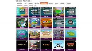 The specialty game category is home to several bingo variants, a Keno title, and an arcade game.
